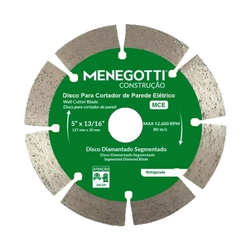 O Disco para Cortadora de Parede MCE 5.1/4" (Nº 19) foi desenvolvido especialmente para oferecer cortes precisos, rápidos e com alto rendimento em alvenaria, concreto, blocos, tijolos e materiais de construção em geral. É o acessório ideal para ser utilizado na Cortadora de Parede MCE, garantindo desempenho e segurança durante a abertura de canaletas e cortes técnicos.
