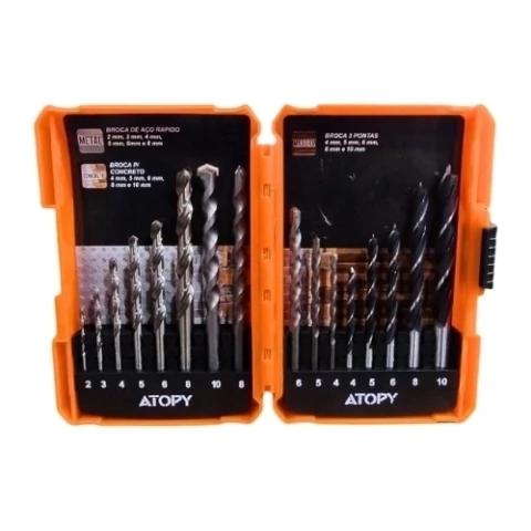 Jogo de Brocas para Concreto, Madeira e Aço 16 Peças – ATOPY