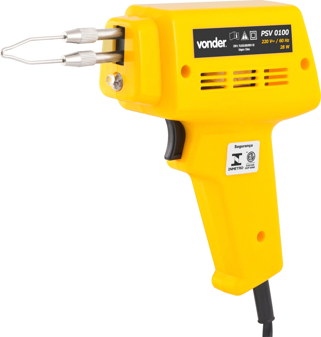 Possui aquecimento rápido, pontas de solda intercambiáveis e lâmpada para iluminar o ponto de solda. Produto certificado conforme normas aplicáveis e portarias do Inmetro.