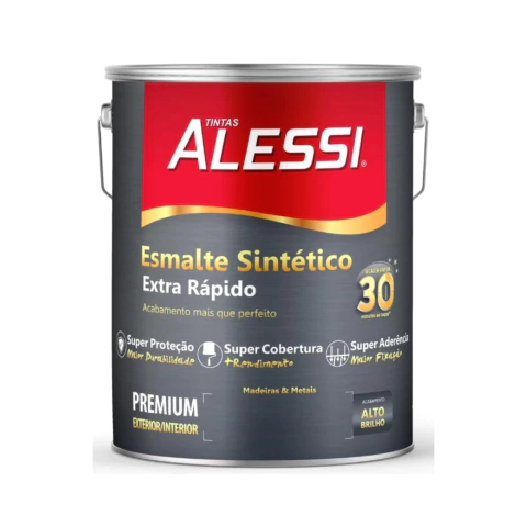 O Alessi Esmalte Sintético Extra Rápido Brilhante Platina Premium é um Esmalte de alta proteção, cobertura, rendimento e durabilidade, que garante um belíssimo acabamento para portas, janelas, grades e portões. Possui ótima aderência, garantindo maior proteção e não descascando com o tempo. Proporciona superior acabamento e boa resistência ao intemperismo. Acabamento: brilhante.